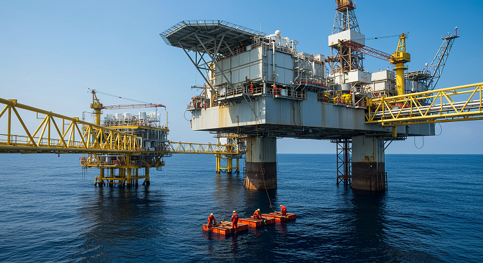 • Exploración y extracción de petróleo y gas natural en campos terrestres y marinos.